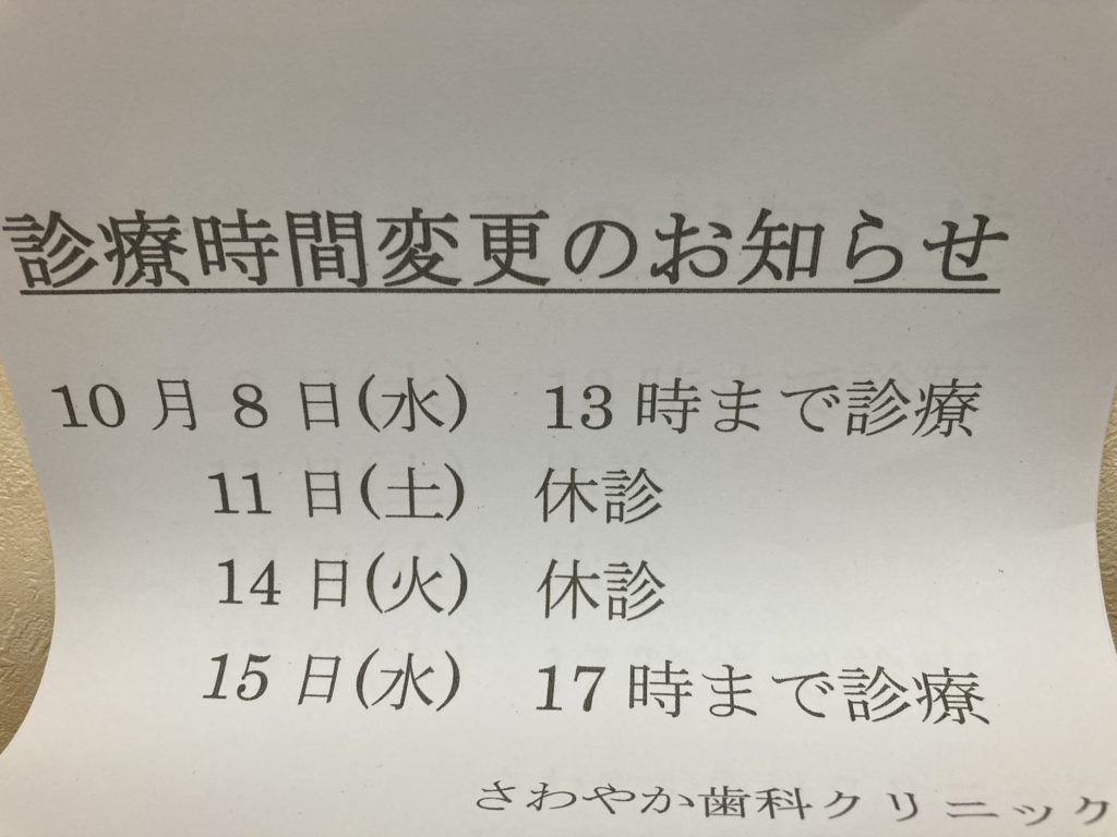 10月診療日時変更のお知らせ